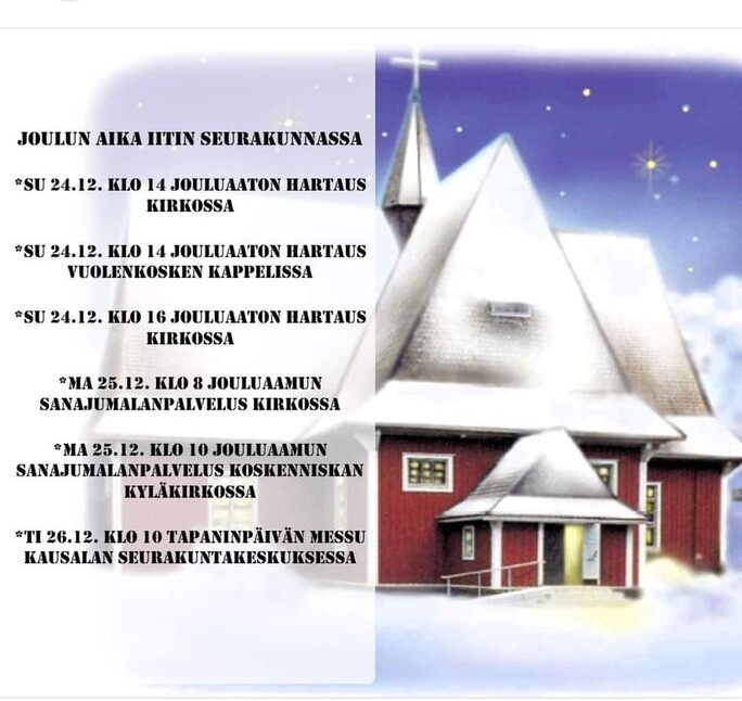 Tervetuloa jouluaaton hartauteen Vuolenkosken kappelille ja joulukirkkoon Kyläkirkolle!