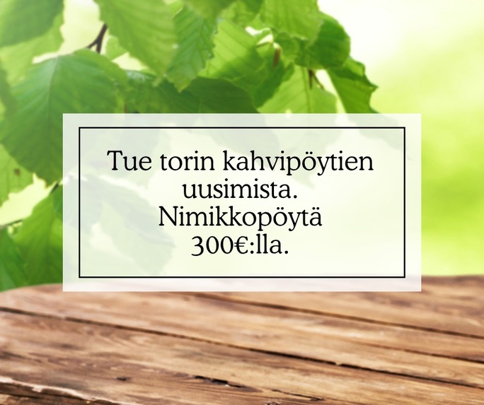 Torirantaa on kehitetty talkoovoimin ja Leader-hankerahoituksen turvin. Hanke ei sisällä torin kahvipöytien uusimista. Nyt uuden torirakennuksen rinnalla, näyttää vahvasti siltä, että vanhat pöydätkin kaipaisi kunnostusta.