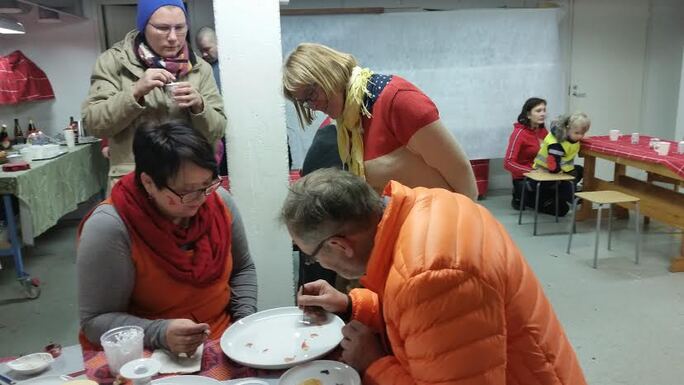 Posliininmaalausta pääsi kokeilemaan itsekin, kun arvottavaan lautaseen sai itse maalata oman tonttukuvan. Toiveissa olisi saada monta uutta posliininmaalaria keskiviikkoiltaisin joukkoomme.