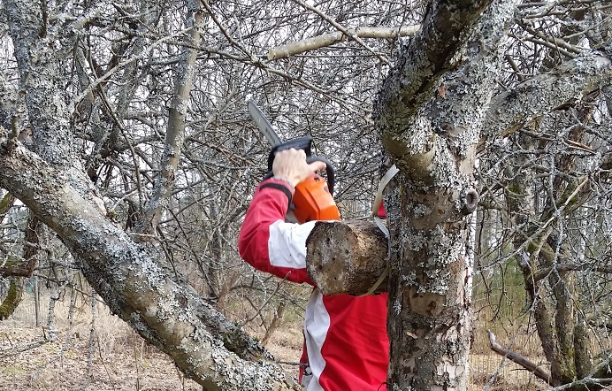 Monikin meistä lukee samat puidenleikkuuartikkelit puutarhalehdistä joka kevät, mutta tässä täten julistamme, että ammattitaitoisen omenologin työn seuraaminen tositilanteessa on huikeasti paljon avartavampaa kuin kaksiulotteisten kuvien katselu. Se mitä lehdistä ei esimerkiksi opi, on, että A-tikkaat voivat viettävästä maaperästä ja epäkeskosta hortonomista johtuvissa ääriolosuhteissa pysyä pystyssä käsityskyvyn tuolle puolen.