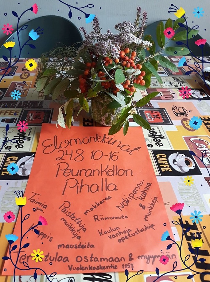 Käsityökahvila Peurankellossa juhlistetaan syksyn alkua Elomarkkinoiden merkeissä ensi lauantaina. Luvassa monenmoista nähtävää, koettavaa ja osteltavaa perinteisiä herkkuja, kuten nokipannukahvia, paistettuja muikkuja tai suussa sulavia munkkeja unohtamatta. Paikan päälle on mahdollisuus tulla myös itse pystyttämään oma koju ilman paikkamaksuja, kun nappaa vain oman pöydän mukaansa.
