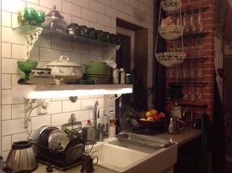 Talonpäädyn lasiverannasta on tullut houkuttava olotila, jonka sisustamme aina uudelleen tarpeiden mukaan: illanistujaisiin, elokuun ravintolapäivään, puuhastelupaikaksi. Siellä syntyvät talven aikana uudet suunnitelmat pihapiiriin. Nyt piirtelemme ikkunaluukkuja rakennettavaan liiteriin ja ompelen vanhoista nenäliinoista lippujanoja tuleviin tapahtumiin.