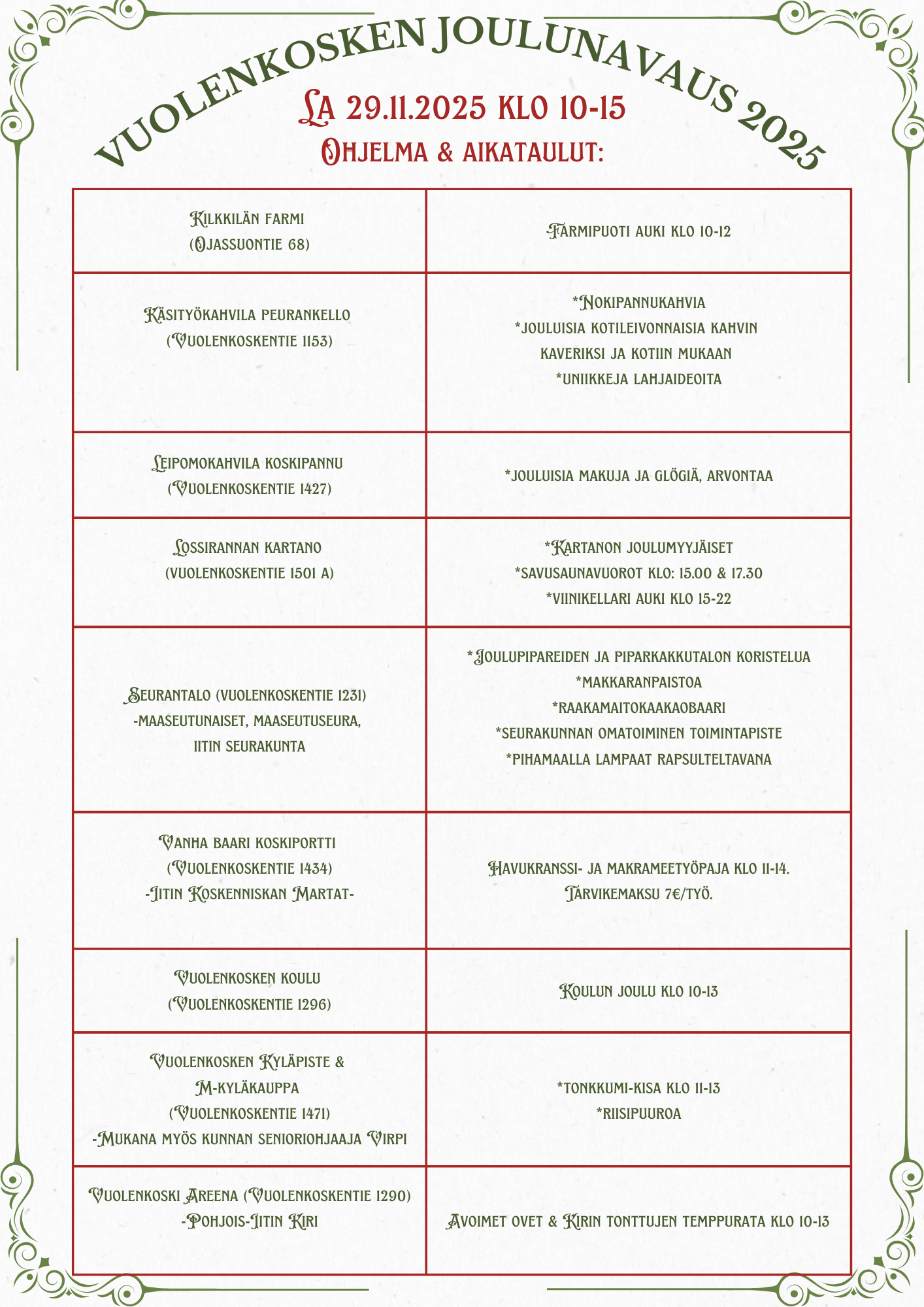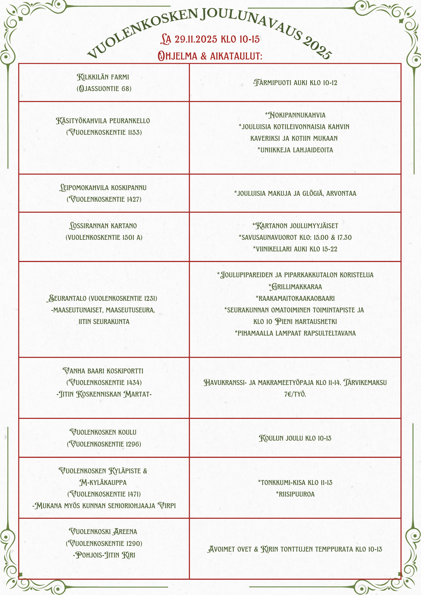 Koko kyläalueen yhteistä ja ihka ensimmäistä joulunavausta vietetään lauantaina marraskuun 29. päivä.