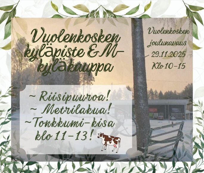 Vuolenkosken Joulunavauksessa puuurotarjoilun on kattanut mainio kyläkauppamme väki! Kyläkeskuksen pihamaalta löydät Kimmon lakurekan, josta löytyy metrilakua jälkiruuaksi![]()